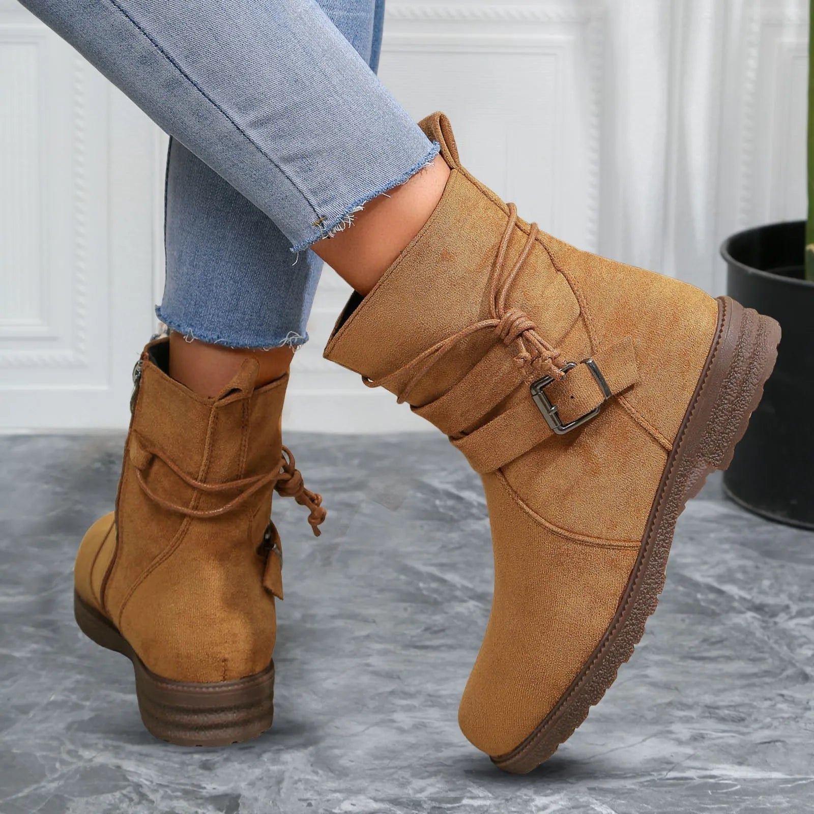 Stylowe damskie botki to idealne połączenie wygody i nowoczesnego designu. Wykonane z trwałego materiału, zapewniają stabilność i komfort noszenia przez cały dzień. Miękka, ocieplana wyściółka skutecznie chroni stopy przed chłodem, a zamek błyskawiczny ułatwia zakładanie. Dodatkowy pasek z klamrą nadaje im modnego charakteru i podkreśla kobiecy styl.