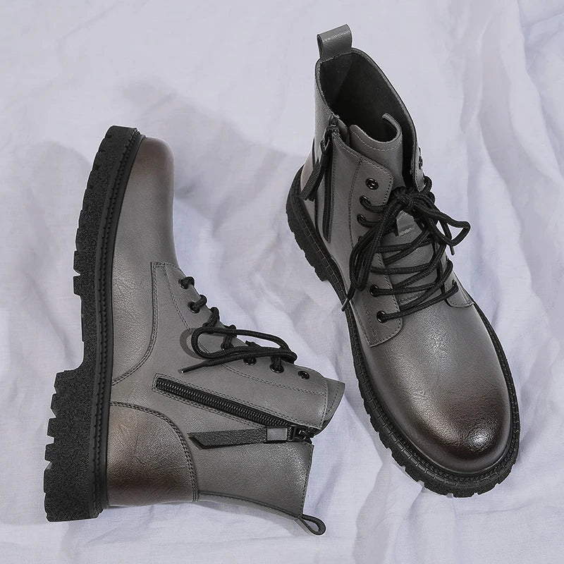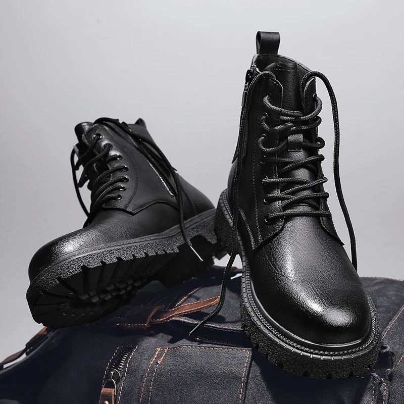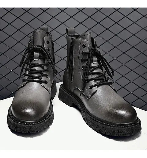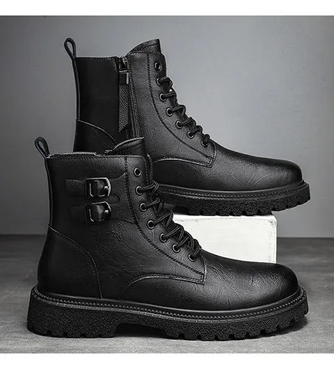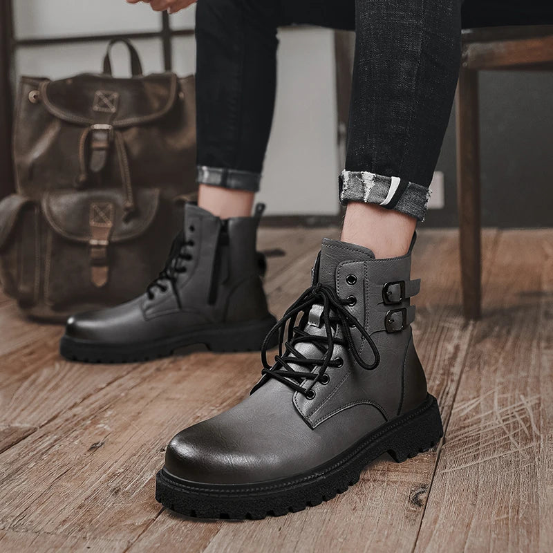 Wytrzymałe męskie buty zimowe to połączenie solidnego wykonania i modnego stylu. Wykonane z wysokiej jakości skóry ekologicznej, zapewniają ochronę przed chłodem i wilgocią, a ocieplane wnętrze gwarantuje komfort nawet w zimowe dni. Buty wyposażone są w sznurowanie oraz praktyczny zamek boczny, co ułatwia szybkie zakładanie. Dodatkowe klamry nadają im charakteru i podkreślają nowoczesny design. Gruba, antypoślizgowa podeszwa dba o stabilność na każdej nawierzchni. Idealne zarówno do codziennego noszenia, jak i outdoorowych aktywności.
