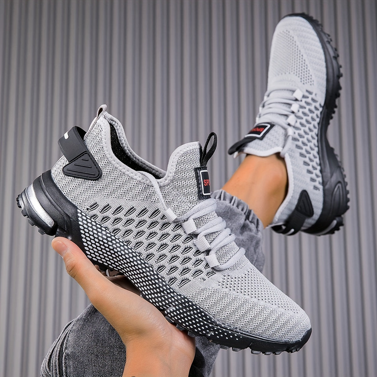 Nowoczesne męskie wkładane buty sportowe, zaprojektowane z myślą o maksymalnym komforcie i wydajności. Wykonane z oddychającego materiału, zapewniają doskonałą wentylację, co czyni je idealnym wyborem na trening, spacery i codzienne aktywności. Elastyczna cholewka dopasowuje się do stopy, a solidna podeszwa gwarantuje stabilność i wsparcie podczas każdego kroku. Detale i tekstury na cholewce nadają butom nowoczesnego wyglądu, który doskonale komponuje się z casualowymi i sportowymi stylizacjami.