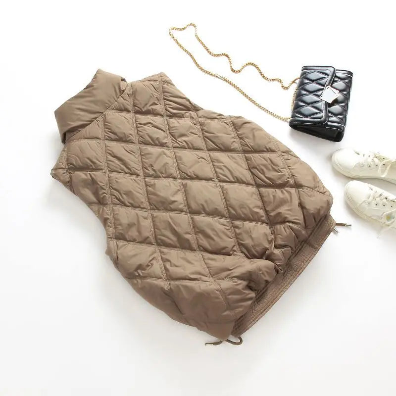Lekka, a zarazem ciepła kamizelka damska to must-have na sezon przejściowy. Pikowany wzór w romby nadaje jej eleganckiego charakteru, a wygodny krój zapewnia swobodę ruchów i komfort noszenia. Model wyposażony jest w praktyczne kieszenie z klapką oraz wysoki kołnierz chroniący przed chłodem i wiatrem. Regulowany dół pozwala dopasować kamizelkę do sylwetki, co czyni ją jeszcze bardziej funkcjonalną. Idealna do codziennych stylizacji w chłodniejsze dni – zarówno w zestawieniu ze swetrem, jak i bluzą.
