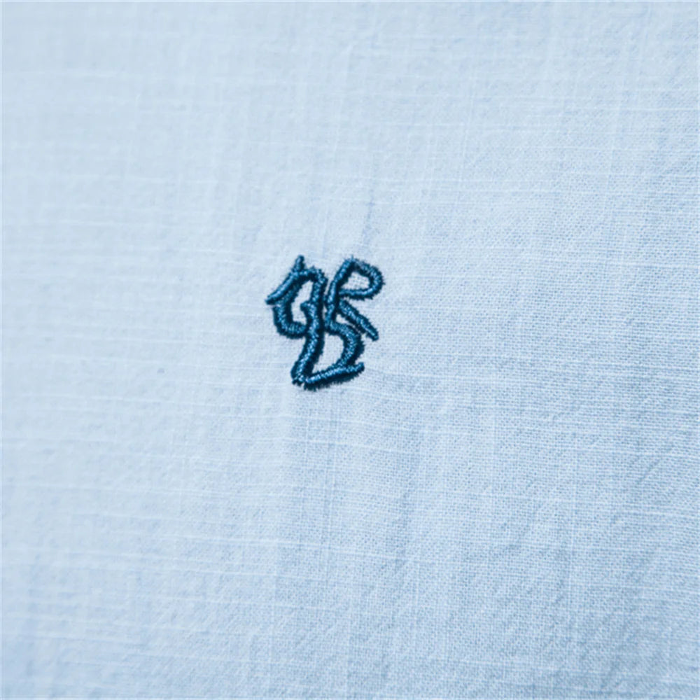 Męska koszula z długim rękawem i stójką – casualowy krój bez kołnierzyka