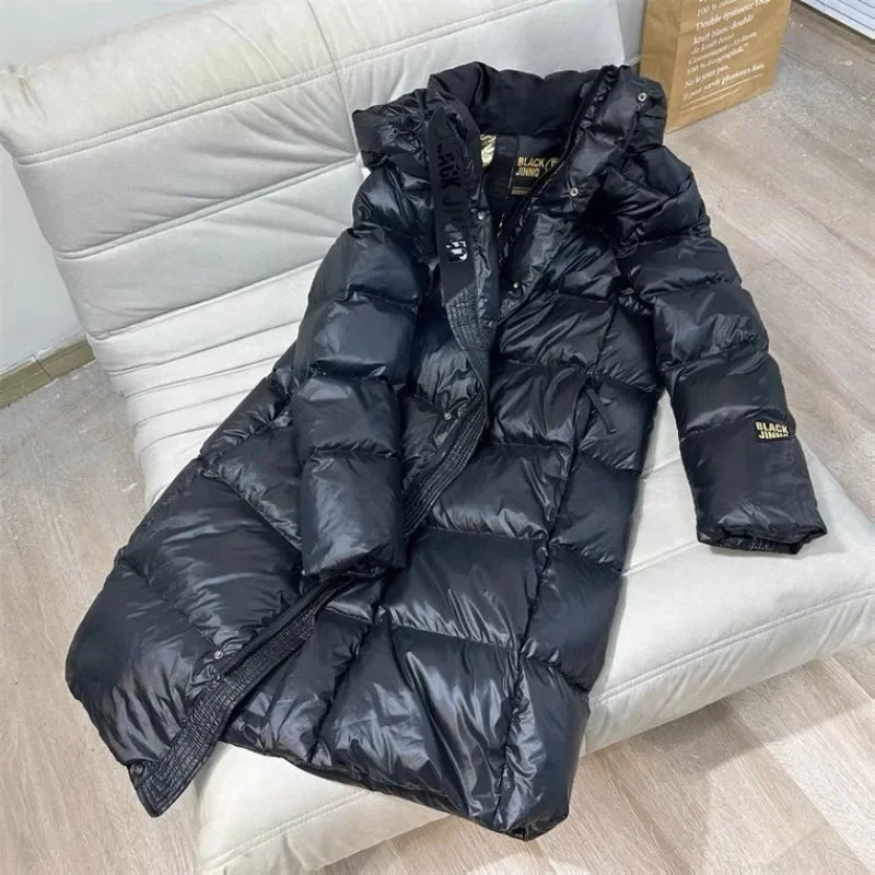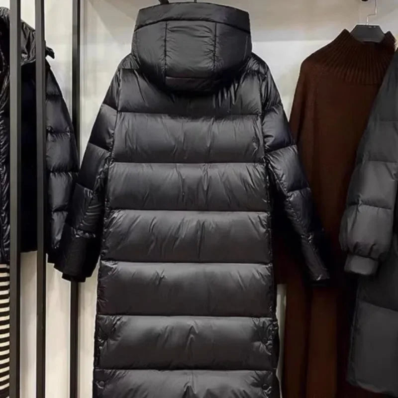 Nowoczesna kurtka puchowa o wydłużonym kroju to idealne rozwiązanie na mroźne dni. Zapewnia maksymalne ciepło i komfort dzięki solidnemu wypełnieniu oraz szczelnemu zapięciu na suwak i napy. Długość do kolan skutecznie chroni przed wiatrem, a kaptur dodaje praktyczności i stylu. Delikatny połysk materiału nadaje kurtce modnego, miejskiego charakteru, a kontrastowe wnętrze podkreśla jej oryginalny design.