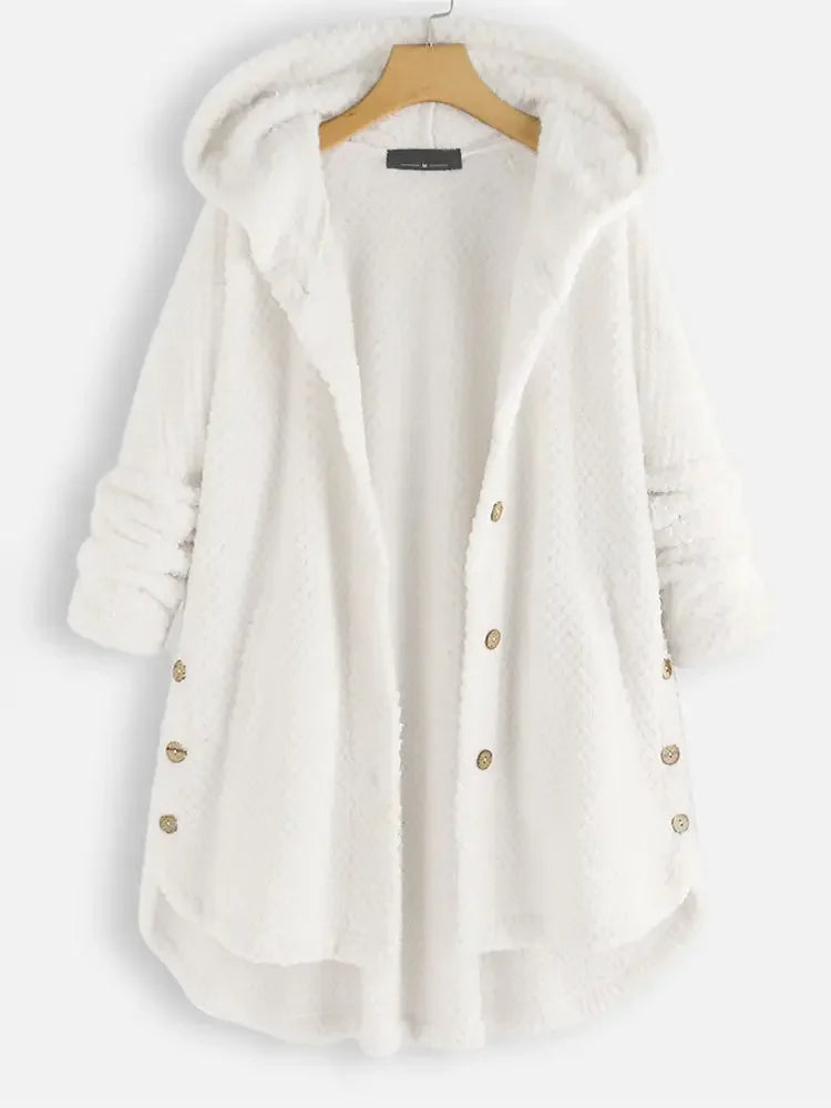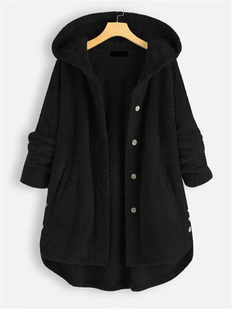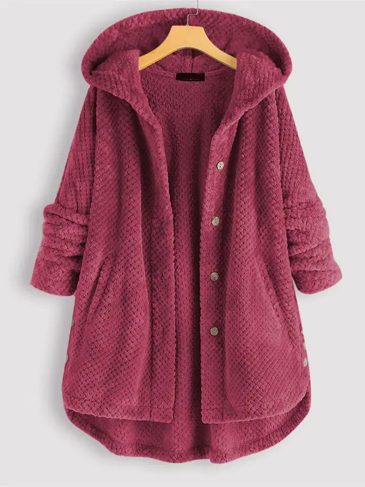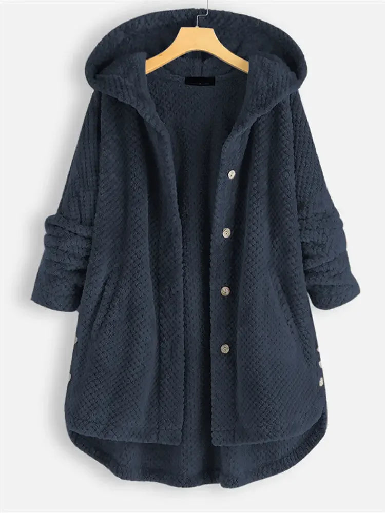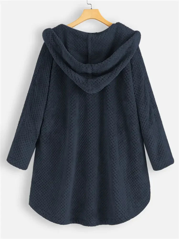 Miękka i niezwykle przyjemna w dotyku bluza–płaszcz damski z kapturem to idealny wybór na chłodniejsze dni. Wykonana z puszystego, futrzanego materiału otula ciało i zapewnia wyjątkowy komfort noszenia. Oversize’owy krój gwarantuje swobodę ruchów, a praktyczne kieszenie i zapięcie na guziki dodają funkcjonalności. Narzutka sprawdzi się zarówno w codziennych stylizacjach, jak i podczas relaksu w domu – to połączenie wygody i stylu, które pokochasz od pierwszego założenia.