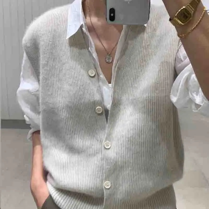 Klasyczna dzianinowa kamizelka damska to ponadczasowy element garderoby, który doskonale dopełni zarówno eleganckie, jak i casualowe stylizacje. Wykonana z miękkiej, przyjemnej w dotyku dzianiny, zapewnia komfort noszenia przez cały dzień. Zapięcie na guziki oraz prosty krój sprawiają, że świetnie prezentuje się na koszuli, bluzce czy cienkim golfie. Idealna do pracy, szkoły, na uczelnię czy spotkania.