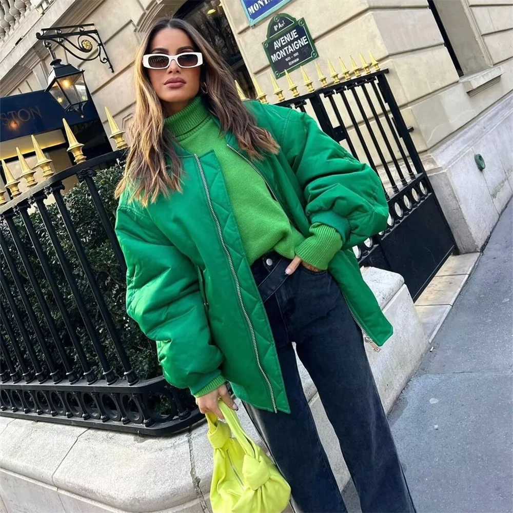 Stylowa kurtka bomberka w wersji oversize to hit sezonu dla kobiet ceniących modny, luźny styl i wygodę. Wykonana z lekkiego, a zarazem ocieplanego materiału, idealnie sprawdzi się w chłodniejsze dni jesieni i zimy. Charakterystyczny krój z elastycznymi ściągaczami oraz praktyczny zamek błyskawiczny nadają jej sportowo-miejski charakter. Dostępna w kilku modnych wariantach kolorystycznych, świetnie komponuje się zarówno z jeansami, jak i sukienkami. To idealna kurtka na co dzień, która łączy komfort z modnym wyglądem.