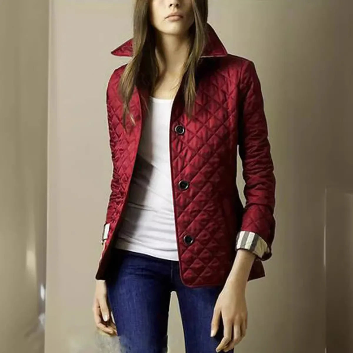 Stylowa damska kurtka pikowana to idealny wybór na sezon przejściowy. Lekka, ale dobrze izolująca przed chłodem, sprawdzi się w codziennym użytkowaniu oraz bardziej eleganckich stylizacjach. Posiada klasyczny kołnierz, zapięcie na guziki oraz starannie przeszywane pikowanie w romby, które dodaje charakteru i smukłej sylwetki. Wygodna i praktyczna, a jednocześnie bardzo kobieca.