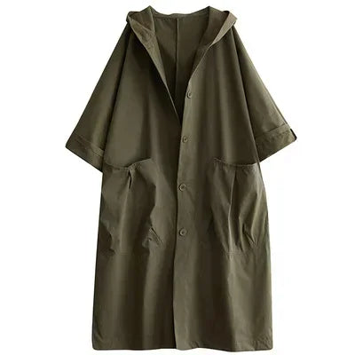 Damski oversize płaszcz z kapturem – stylowy trencz w luźnym kroju