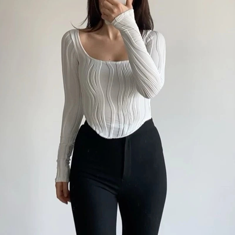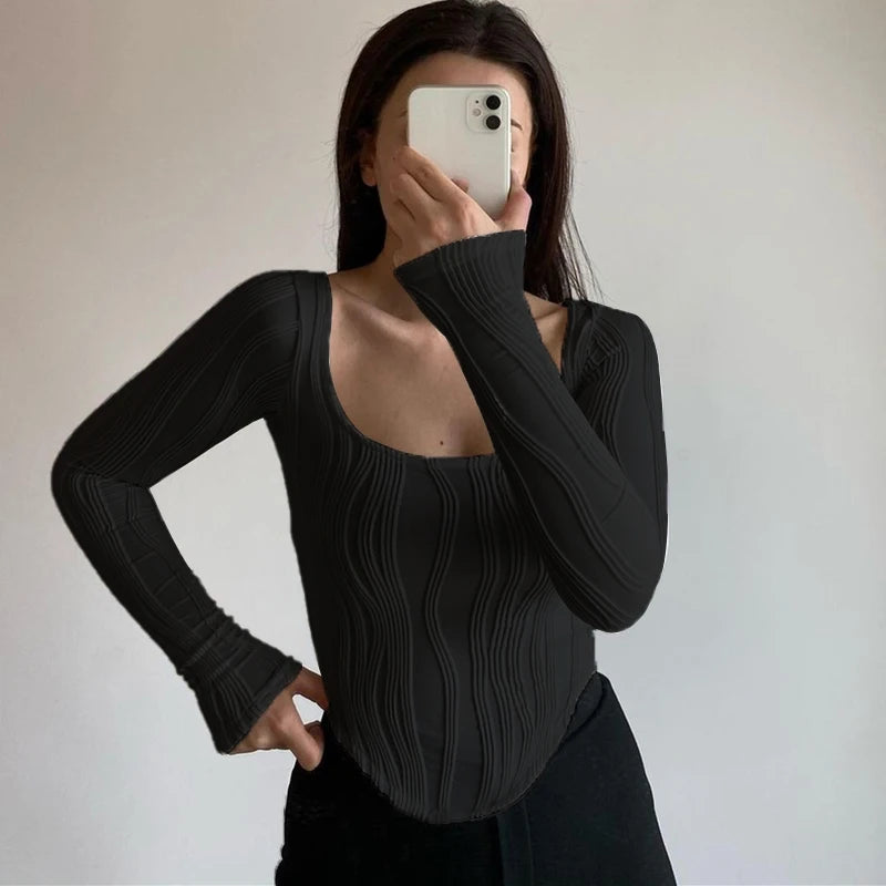 Top z Długim Rękawem i Strukturalnym Wzorem