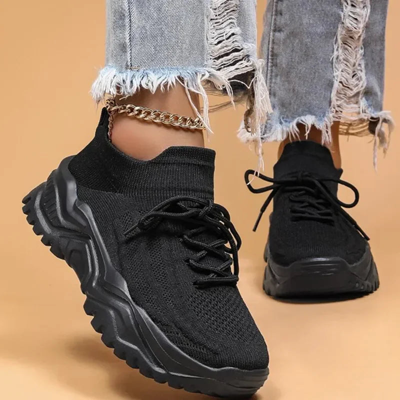 Nowoczesne damskie buty sportowe na grubej podeszwie to połączenie stylu i wygody, które doskonale sprawdzi się w codziennych stylizacjach. Elastyczna, przewiewna cholewka dopasowuje się do kształtu stopy, zapewniając komfort noszenia przez cały dzień. Gruba, wyprofilowana podeszwa gwarantuje doskonałą amortyzację i stabilność, co czyni je idealnym wyborem na miejskie spacery i aktywny tryb życia.