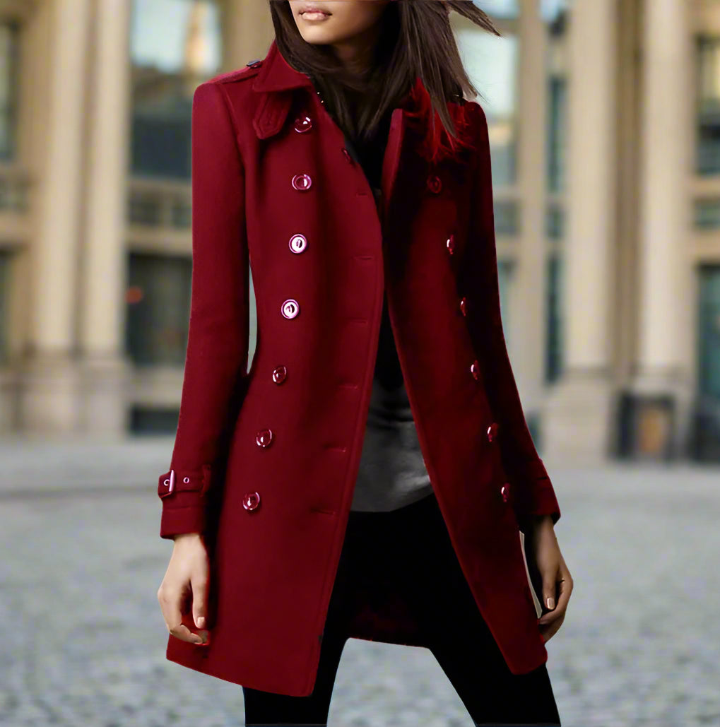 Stylowy i ponadczasowy płaszcz wełniany, który łączy klasyczną elegancję z funkcjonalnością. Dwurzędowe zapięcie dodaje wyrafinowanego charakteru, a dopasowany krój podkreśla sylwetkę. Wysokiej jakości materiał z wełny zapewnia komfort cieplny, idealny na chłodniejsze dni. Detale takie jak pasek w talii i eleganckie guziki nadają płaszczowi wyjątkowego stylu, czyniąc go doskonałym wyborem na formalne i codzienne stylizacje.