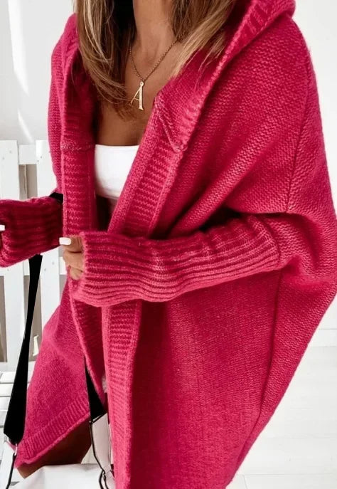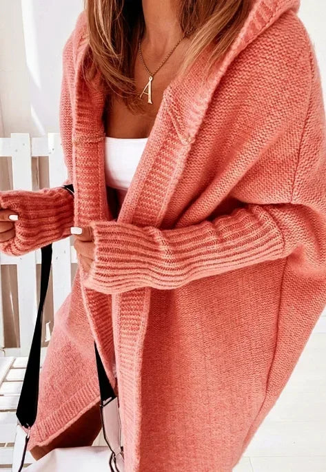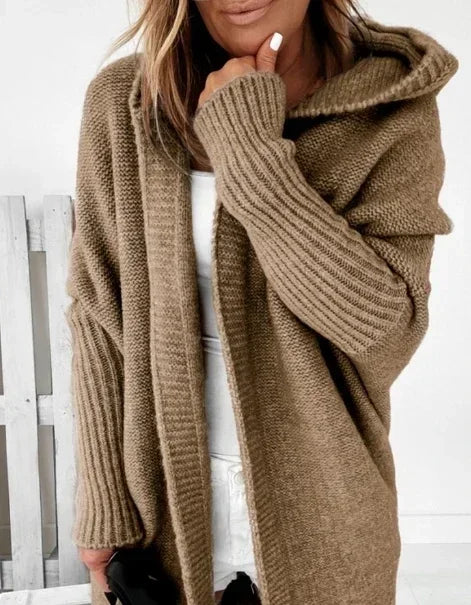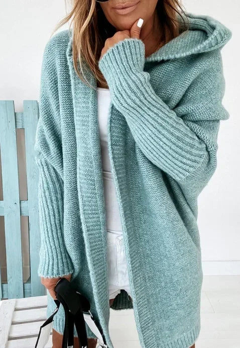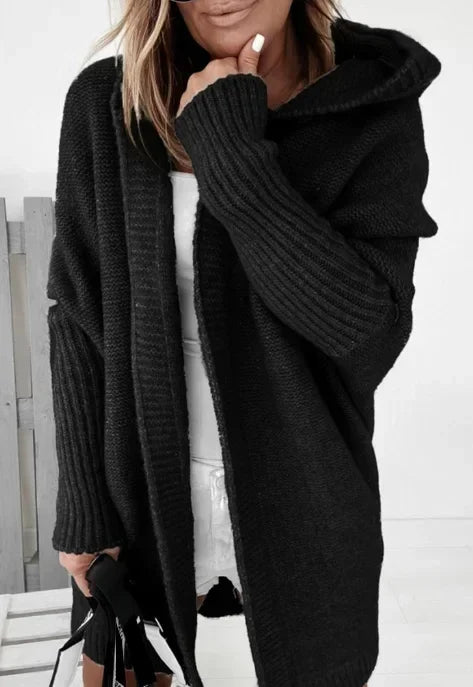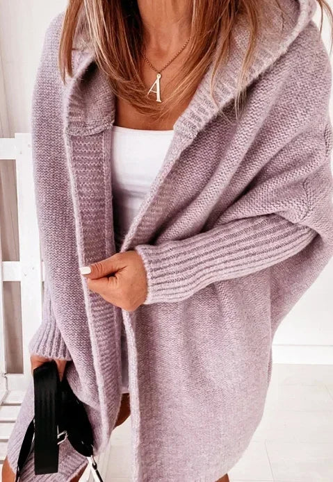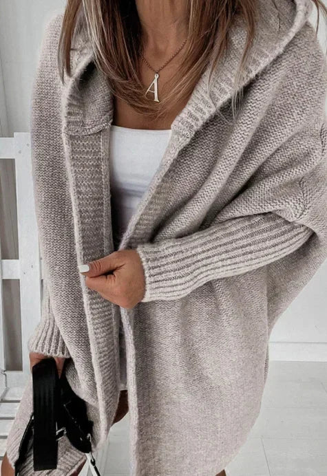 Stylowy kardigan idealny na chłodniejsze dni, łączący wygodę z modnym wyglądem. Szerokie rękawy oraz luźny krój zapewniają swobodę ruchów, a kaptur dodaje praktyczności i chroni przed chłodem. Miękki materiał otula ciepłem, sprawiając, że kardigan doskonale sprawdzi się zarówno na co dzień, jak i w bardziej casualowych stylizacjach. Minimalistyczny design czyni go wszechstronnym elementem garderoby.