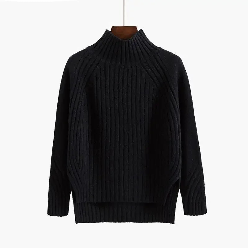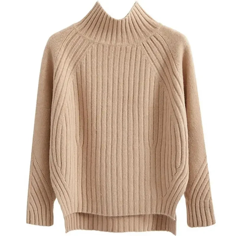 Ten prążkowany sweter damski z półgolfem to idealny wybór na chłodne dni. Wykonany z miękkiej i przyjemnej w dotyku dzianiny, zapewnia komfort termiczny i doskonale układa się na sylwetce. Wysoki dekolt chroni przed wiatrem, a strukturalne przeszycia dodają nowoczesnego charakteru. Sweter świetnie komponuje się z jeansami, spódnicą czy materiałowymi spodniami – zarówno w stylizacjach casual, jak i smart casual.