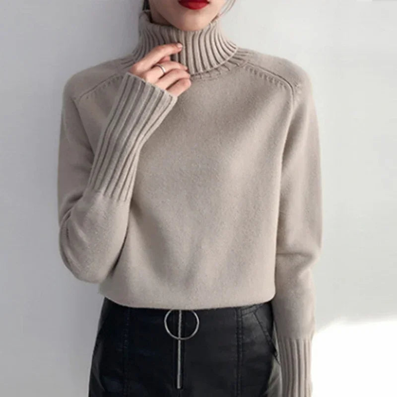 Elegancki sweter z kaszmiru to idealny wybór na chłodniejsze dni, łączący luksus i wygodę. Wykonany z najwyższej jakości kaszmiru, jest miękki, ciepły i delikatny w dotyku. Golf zapewnia dodatkowe ciepło, a dopasowany krój z subtelnymi przeszyciami na ramionach dodaje stylu. Długie rękawy zakończone szerokim mankietem podkreślają nowoczesny design. Świetnie komponuje się z eleganckimi spódnicami, jak i klasycznymi spodniami.