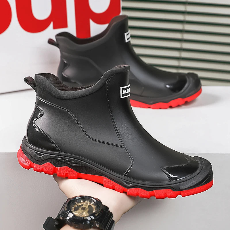 Praktyczne i solidne męskie kalosze gumowe to idealny wybór na deszczowe dni, pracę w ogrodzie, spacery w terenie czy codzienne użytkowanie w trudnych warunkach. Wodoodporna konstrukcja skutecznie chroni stopy przed wilgocią, a antypoślizgowa podeszwa zapewnia doskonałą przyczepność nawet na śliskich powierzchniach. Buty są lekkie, elastyczne i wygodne, co sprawia, że sprawdzają się zarówno podczas krótkich, jak i dłuższych aktywności na zewnątrz. Ich sportowy fason i solidna podeszwa gwarantują trwałość i komfort użytkowania.