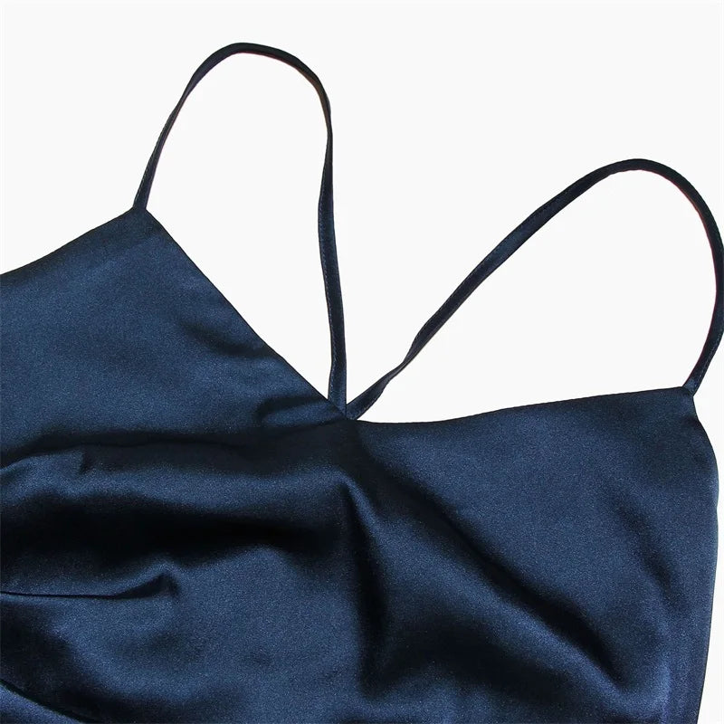 Suknia wieczorowa satynowa z rozcięciem – elegancka długa sukienka na ramiączkach